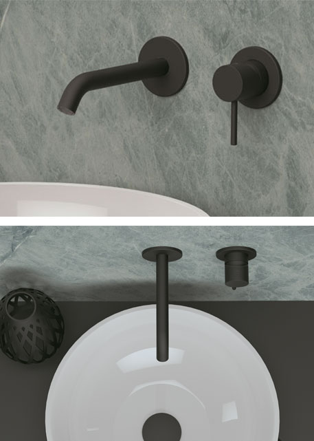 Sempre più apprezzata soprattutto per lavabi e interni doccia, la rubinetteria con finitura NERO OPACO diventa un dettaglio di grande stile in interni minimalistici, industrial e contemporanei.
